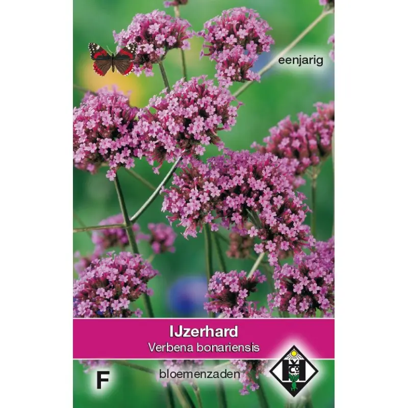 Een onmisbare plant voor zowel vlinders als voor ons zelf. de anderhalve meter hoge, ijle, sterke stengels met hun talloze schermpjes vol warm violette bloemetjes, blijven zich maar vertakken en bloeien door tot aan de eerste vorst. Tientallen vlinders en andere insecten dansen en zoemen er in de zomer omheen. Een groep bijelkaar heeft een schitterend effect, maar vooral ook tussendoor geplant voegt deze hoge Vebena door haar transparante gratie een dimensie aan de tuin toe: ze maakt alles extra ruimtelijk. Ook in boeketten komen de bloeistengels prachtig uit. Eigenlijk een half winterharde vaste plant, maar meestal als eenjarig toagepast. Zaaitijd: binnen in maart en april, buiten in mei.
